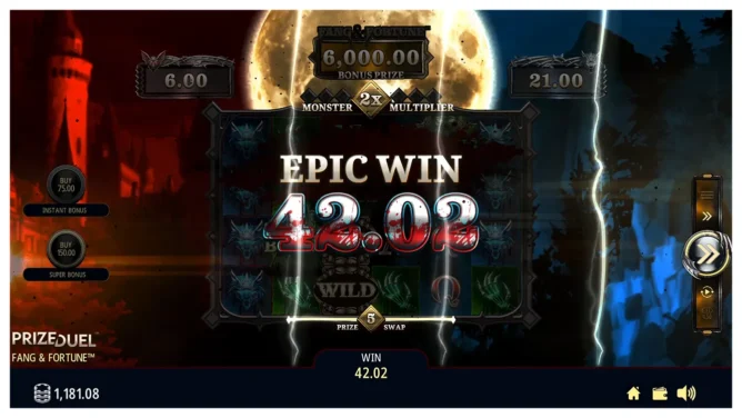 During the FANG & FORTUNE™ Bonus, players enter either the Vampire or Werewolf path, each centered on locking multipliers that stack toward a high-value top prize.