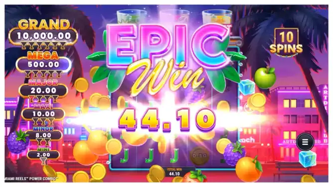 Feel the Miami beat with Miami Reels™ Power Combo™, where fruits sparkle, coins stack, and jackpots sizzle. Wilds trigger Bonus Spins, Stars bring instant upgrades, and Power Combo™ modes fuse together for electric payouts. Whether it’s Free Spins, Multipliers, or Mega Jackpots — the reels of Miami never sleep.