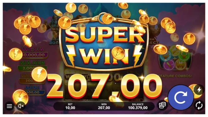 Raging Gods: Olympus 2 POWER COMBO™ focuses on combining multiple bonus mechanics into a single evolving feature. While the base game offers a familiar structure, the bonus system transforms gameplay into a layered experience driven by collected symbols.