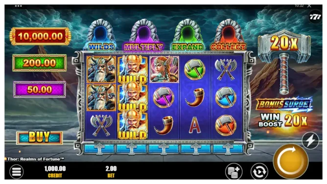 Set on a 5×3 reel grid that can expand into a massive battlefield, Thor Realms of Fortune invites players to experience Norse legend like never before. Wins unlock extra rows and create thousands of ways to win, while Mjölnir Wilds electrify payouts. The Jackpot Wheel offers divine treasures, and Free Spins bring thunderous possibilities to life. With epic art and booming sound, it’s a slot that commands attention.